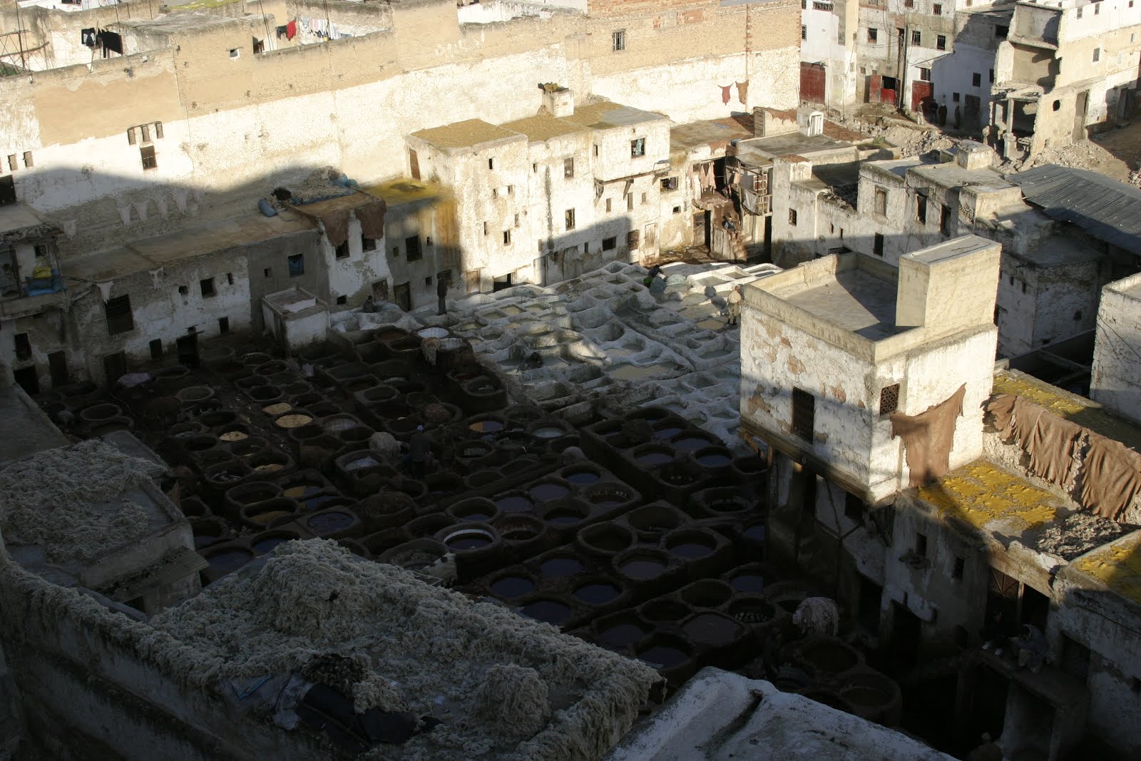 Went to see the carpet seller - hard sell!! but it was in a cool old house that one family used to live in, but is now a rug co-op. There was a huge inner courtyard with rooms coming off the sides. Went to one to look down at the tanneries - so interesting, but it smelled really funny. Its where they soak and dye leather from cows, sheep, goat, and camel. It also had a nice panorama of the city.